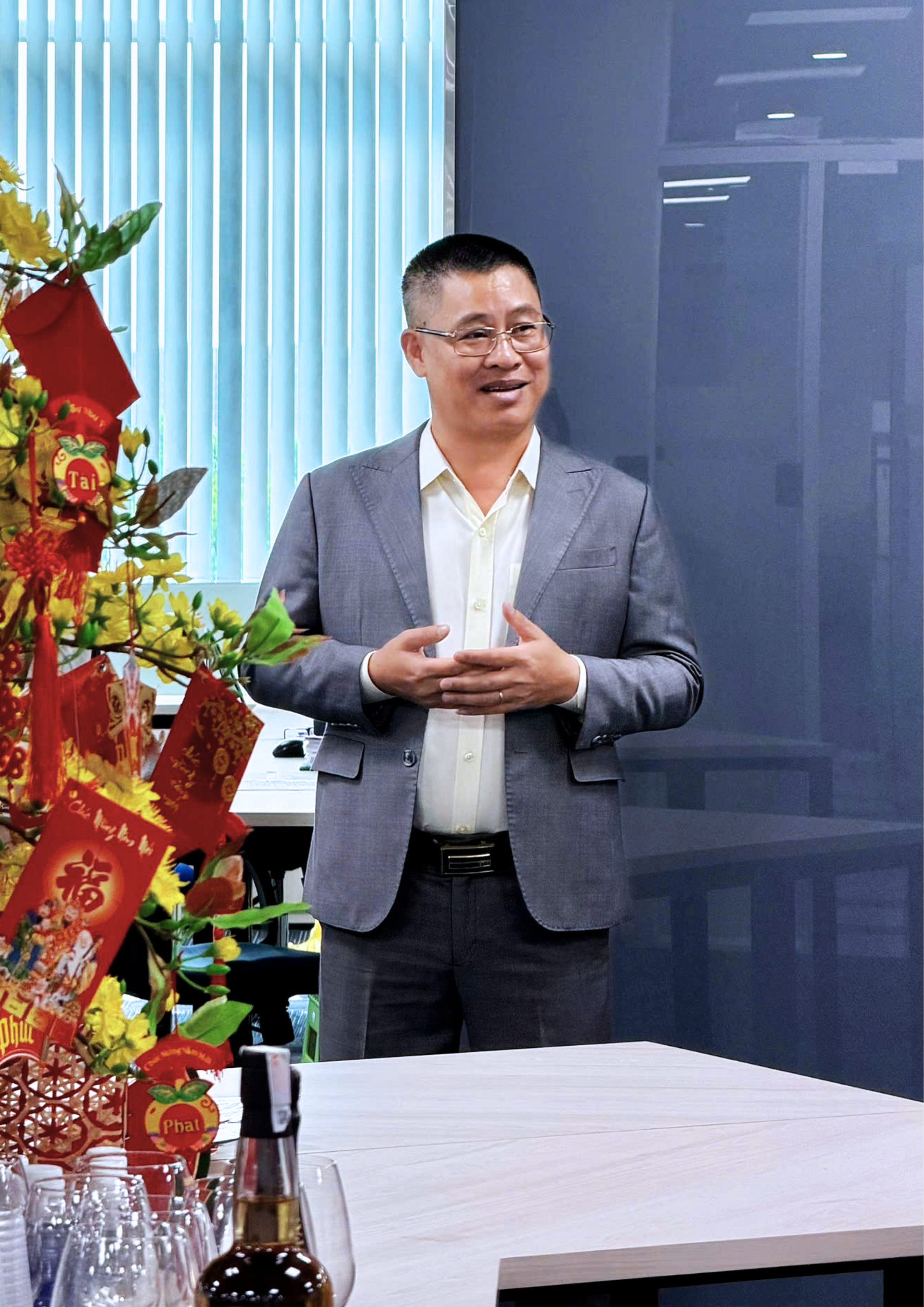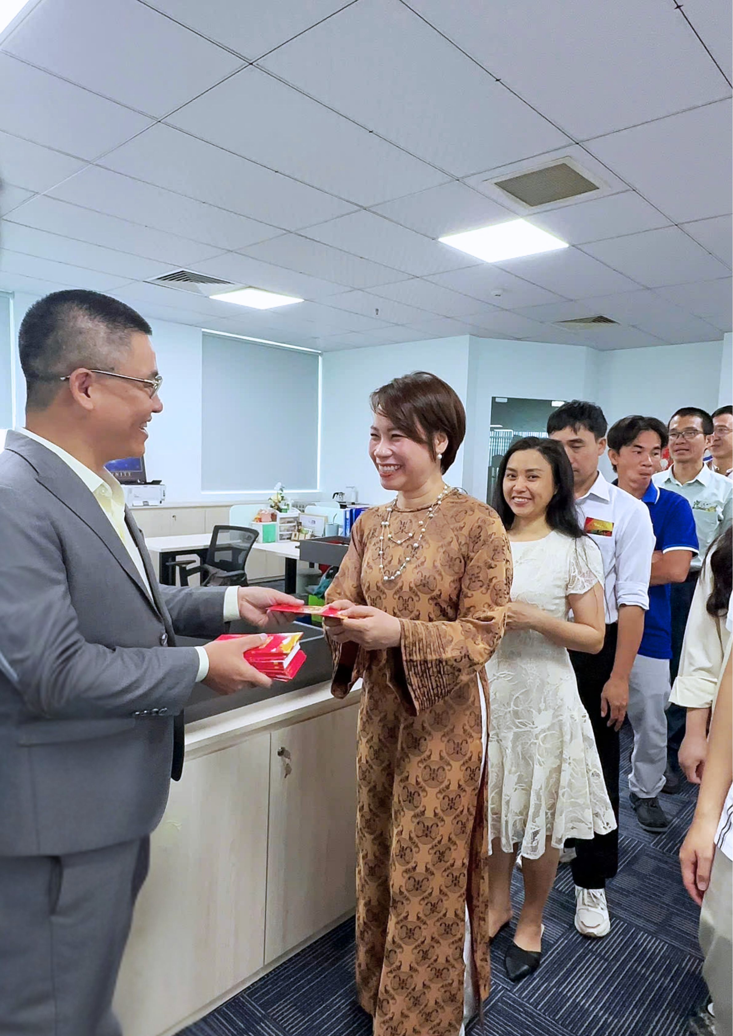 Khoảnh khắc Ông Nguyễn Ngọc Trung - CEO Công ty Cổ phần Công nghệ ITD gửi lời chúc khai xuân và trao lì xì may mắn đến đội ngũ nhân viên