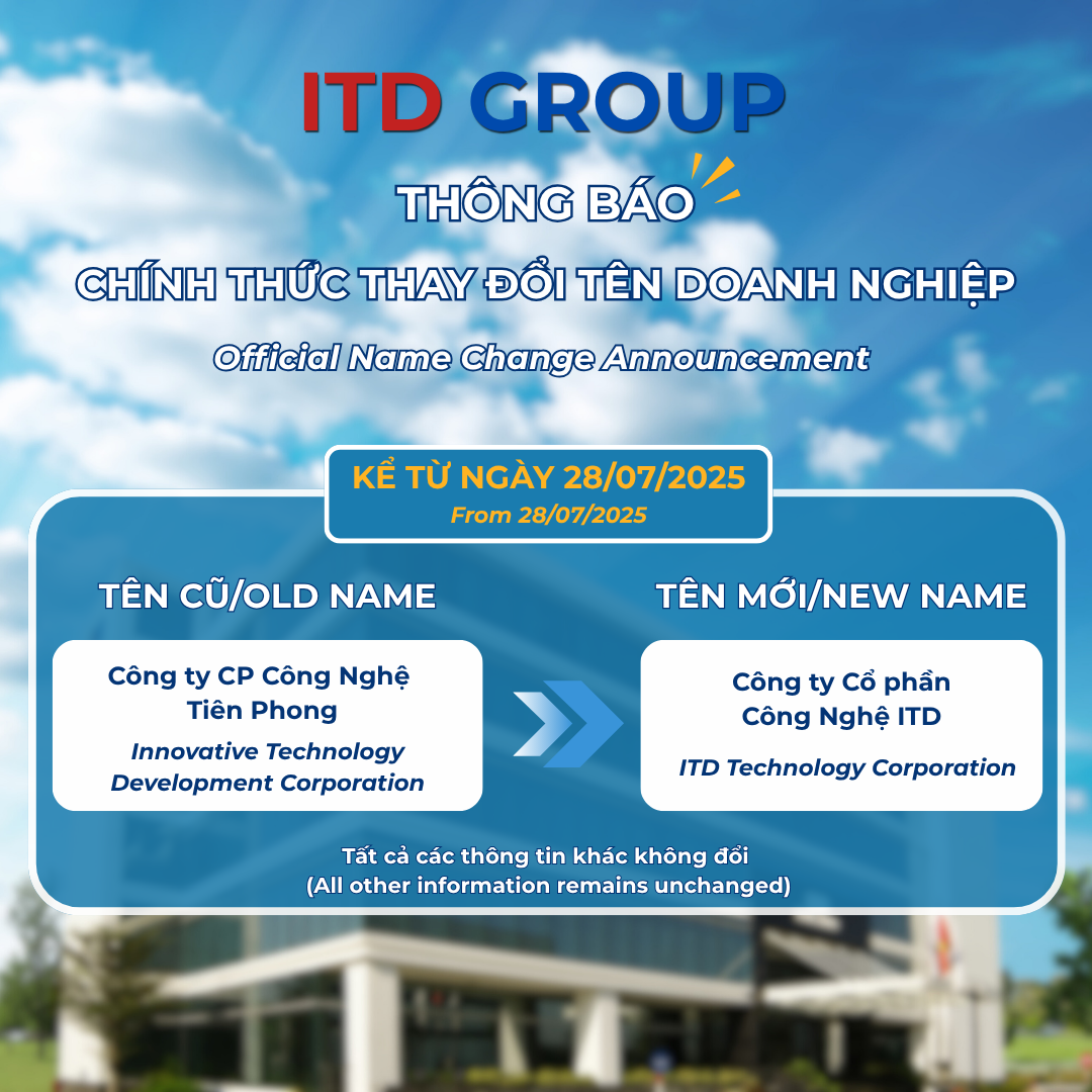 We are pleased to officially announce that, effective from July 28, 2025, Tien Phong Technology Corporation has been renamed to ITD Technology Corporation (CÔNG TY CỔ PHẦN CÔNG NGHỆ ITD).